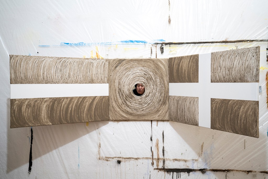 „Die Bewegung der Asche“ bildet einen wichtigen Ausgangspunkt in der Erzählung meiner spurenbasierten Arbeiten. In dieser Arbeit mischte ich verbrannte Asche mit Knochenleim und fügte meine eigene Bildsprache dem traditionellen Rahmen der Malerei hinzu. Asche ist ein Material, das das Verschwinden von etwas bereits bezeugt – dennoch arbeitete ich zu dieser Zeit noch in einer handgeführten Weise, also in einer Methode, die den menschlichen Willen und die Kontrolle in den Vordergrund stellt.