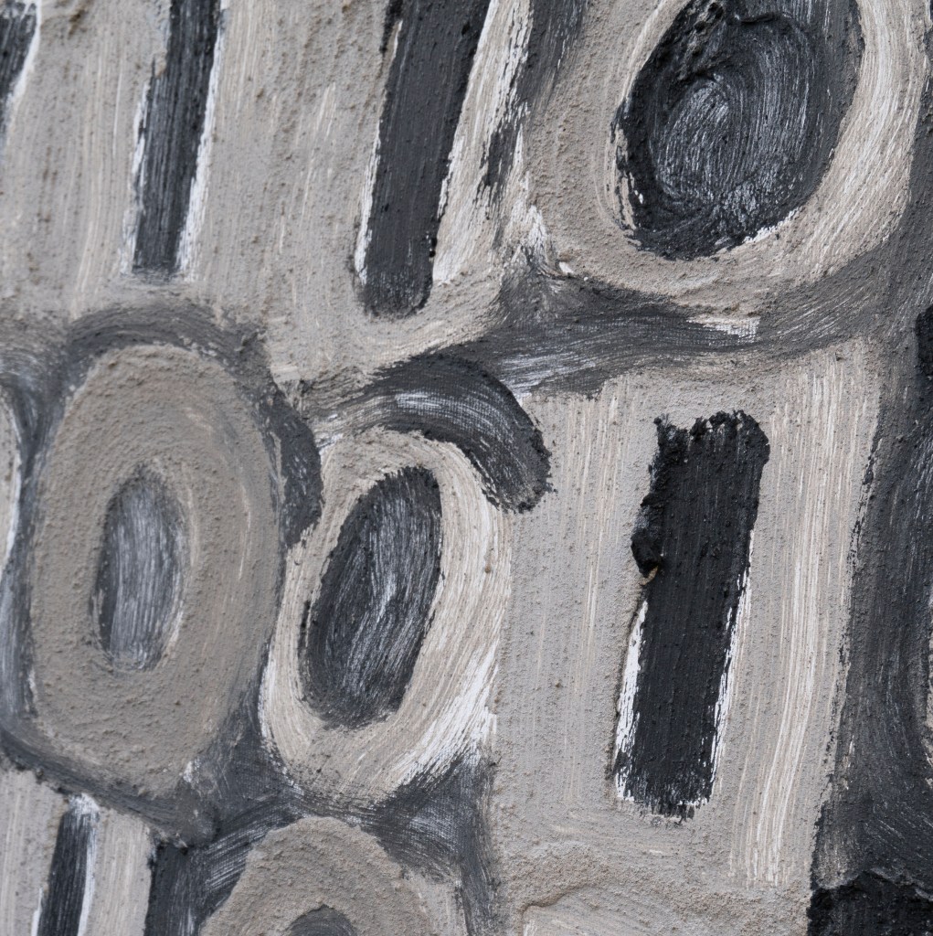 I inscribe these two signs onto canvas using the materials ash and charcoal.