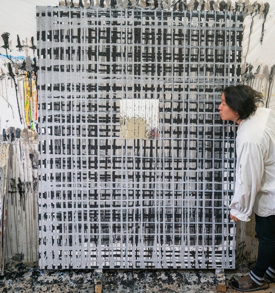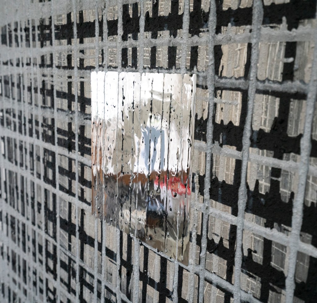 재와 숯을 라텍스와 섞어 중력의 흐름에 맡겨 흘려보냈다.