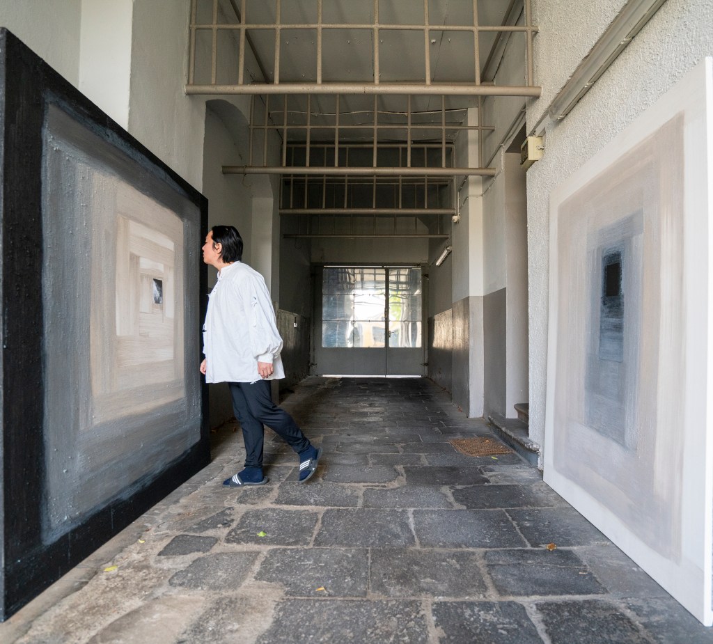 Ash to charcoal / 185cm X 150cm / Charcoal, Ash and Mirrorfilm on Canvas / 2024 Düsseldorf