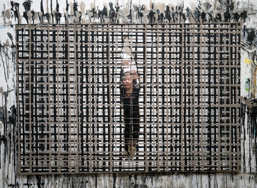 재와 숯을 라텍스와 섞어 중력의 흐름에 맡겨 흘려보냈다.