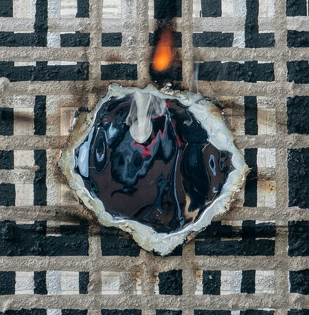 재와 숯을 라텍스와 섞어 중력의 흐름에 맡겨 흘려보냈다.
