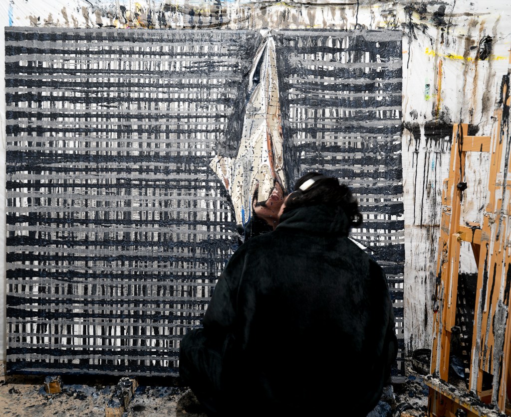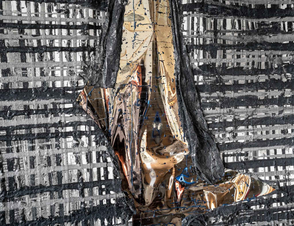 재와 숯을 라텍스와 섞어 중력의 흐름에 맡겨 흘려보냈다.